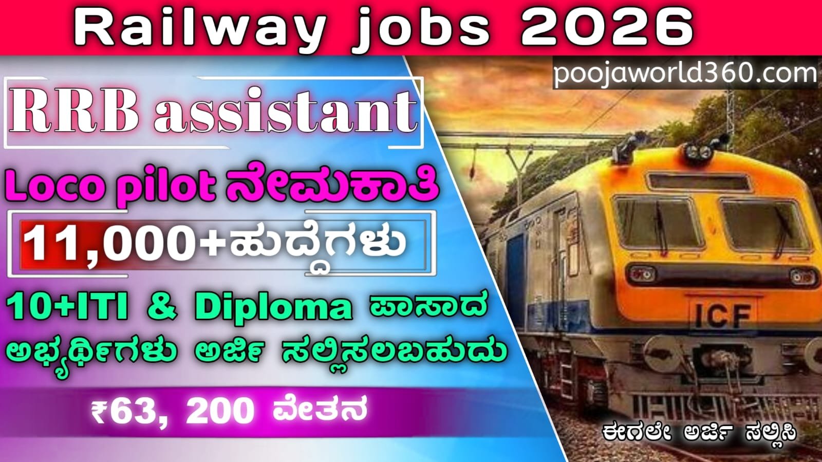 RRB Assistant Loco Pilot ನೇಮಕಾತಿ 2026:11,127ಹುದ್ದೆಗಳು – 10+ITI&Diploma ಪಾಸಾದ ಅಭ್ಯರ್ಥಿಗಳು ಅರ್ಜಿ ಸಲ್ಲಿಸಬಹುದು.