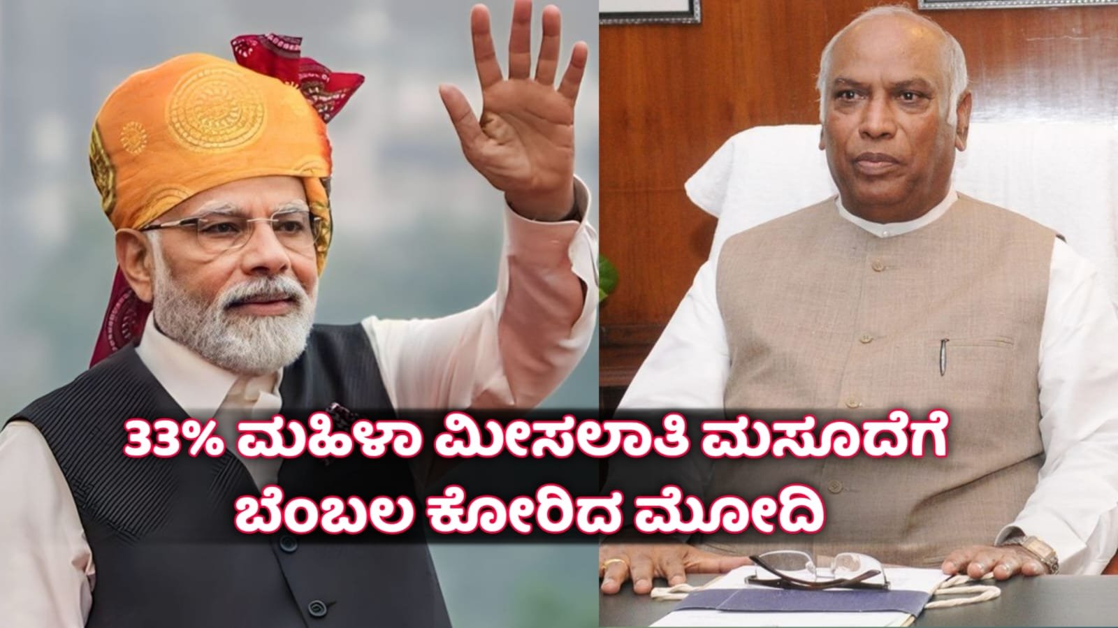 33% ಮಹಿಳಾ ಮೀಸಲಾತಿ ಮಸೂದೆಗೆ ಬೆಂಬಲ ಕೋರಿದ ಮೋದಿ – ಸರ್ವಪಕ್ಷ ಸಭೆಗೆ ಖರ್ಗೆ ಆಗ್ರಹ
